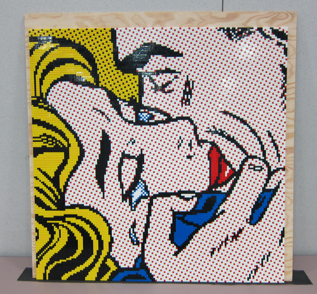 超有名なポップ・アートの巨匠ロイ・リキテンシュタインの作品「キスV」をレゴで再現してます。
