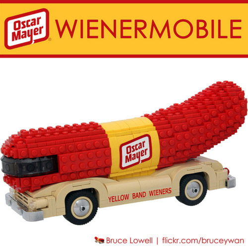 アメリカの有名ハム、ソーセージ屋「オスカー・メイヤー」が実際に宣伝カーとして使用しているウインナーモービルをレゴで再現しています。