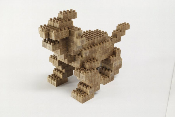 ブロックの材料に天然素材の樹皮やおが粉を使用したエコなブロックトイ。